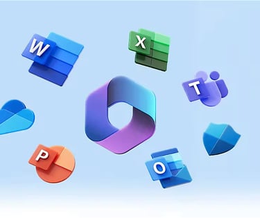 Cursos específicos de cada módulo de Microsoft: Copilot, PowerBI, PowerPoint, Excel, Forms, ClipChamp, Teams, Planner, Onedrive, Outlook, SharePoint, Calendario, Delve, Learging, Insights....